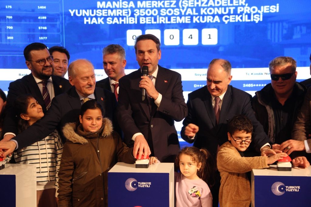 Cumhuriyet tarihinin en büyük sosyal konut hamlesi olan “500 Bin Sosyal Konut Projesi” kapsamında Manisa’da inşa edilecek 7 bin 459 konut için hak sahipleri belirlendi. Manisa Celal Bayar Üniversitesi Süleyman Demirel Kültür Merkezi’nde gerçekleşen kura çekimine Enerji ve Tabii Kaynaklar Bakanı Alparslan Bayraktar, Manisa Valisi Vahdettin Özkan, AK Parti MKYK Üyesi ve Manisa Milletvekili Ahmet Mücahit Arınç, AK Parti Manisa Milletvekili Tamer Akkal katıldı. Bakan Bayraktar, Manisa’da 41 şehit ailesi projeye başvurduğunu ve bu ailelerin tamamı öncelik kategorisinde yer aldığı için başvurularının tamamının kabul edildiğini kaydetti.