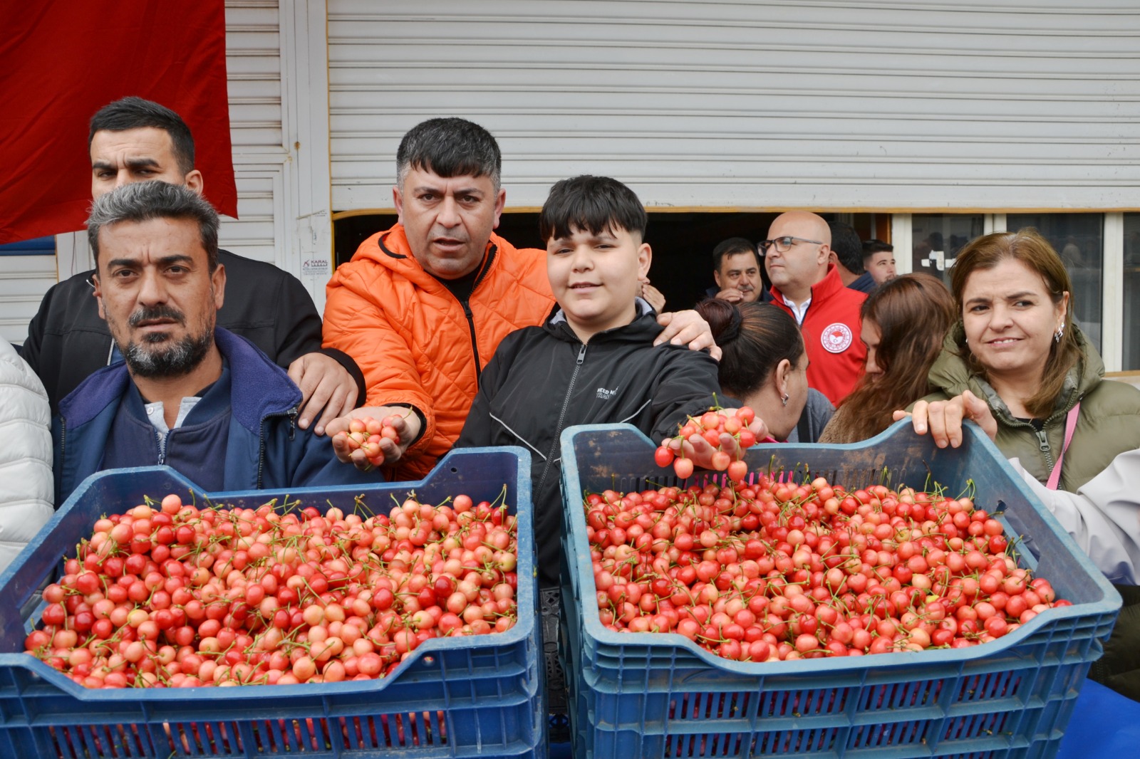 İlk hasadın heyecanını yaşayan üreticiler, “Cristobalina” cinsi kirazlarının hasadı sonrasında ürünlerini kiraz alım merkezine götürdü.